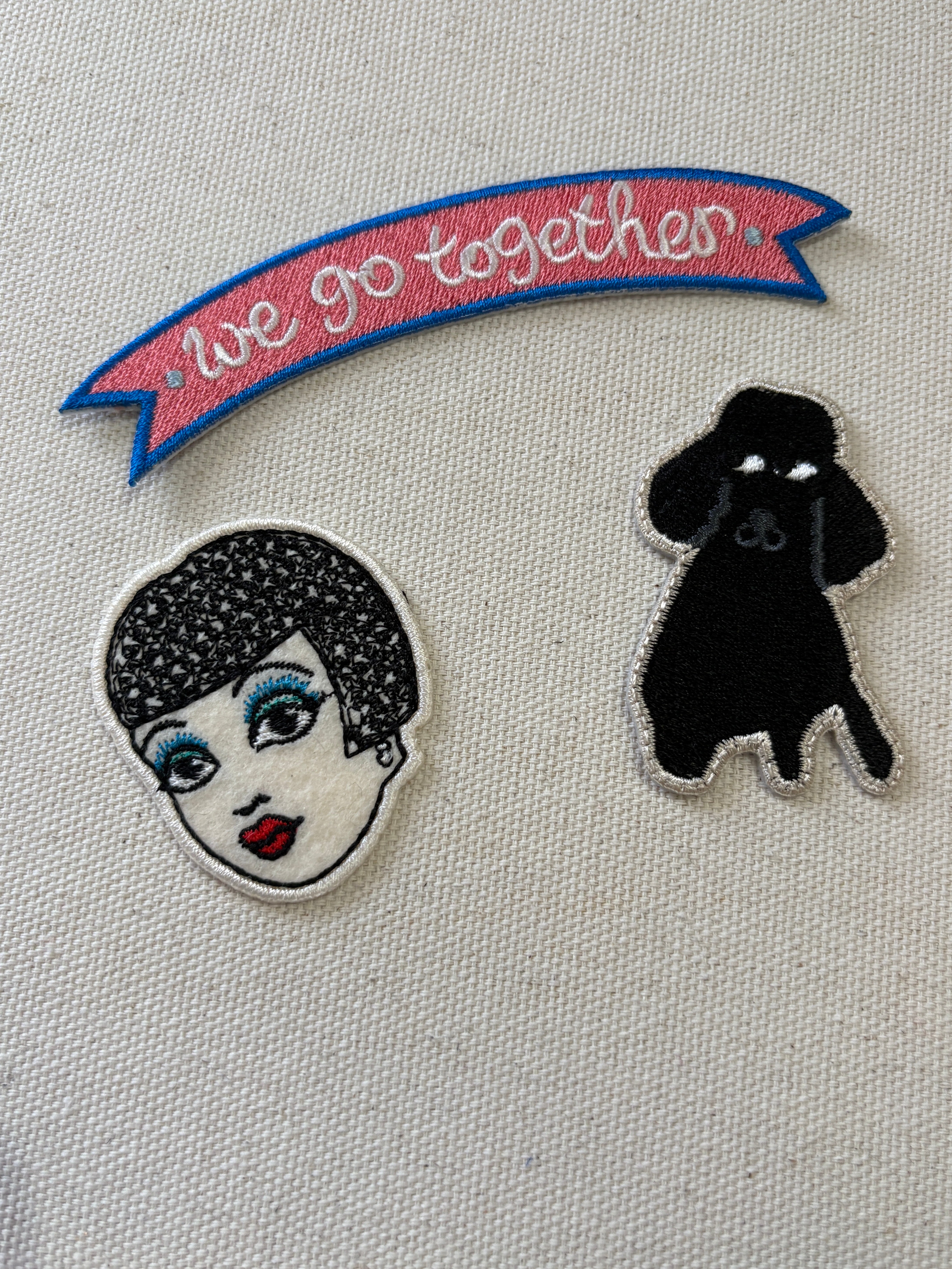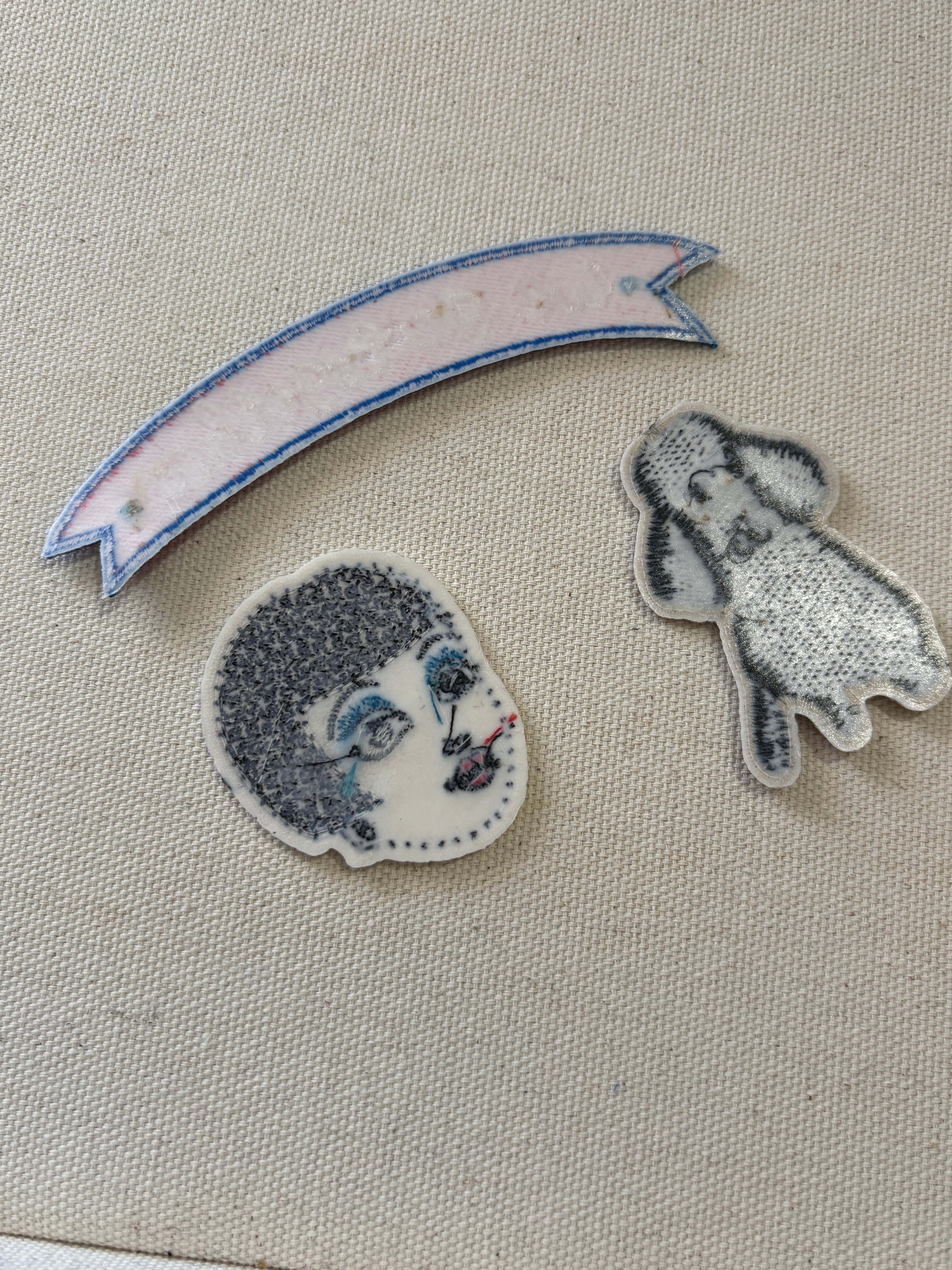 バナナの犬はシールタイプなので布につける場合は縫い付けで補強必要です。