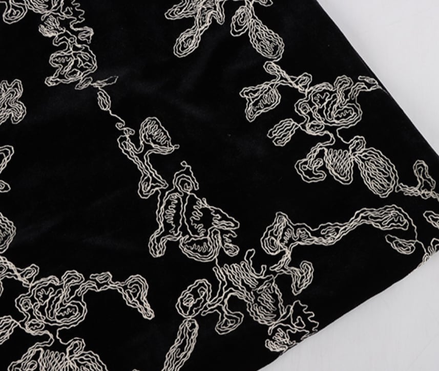 刺繍ベロア生地ブラック